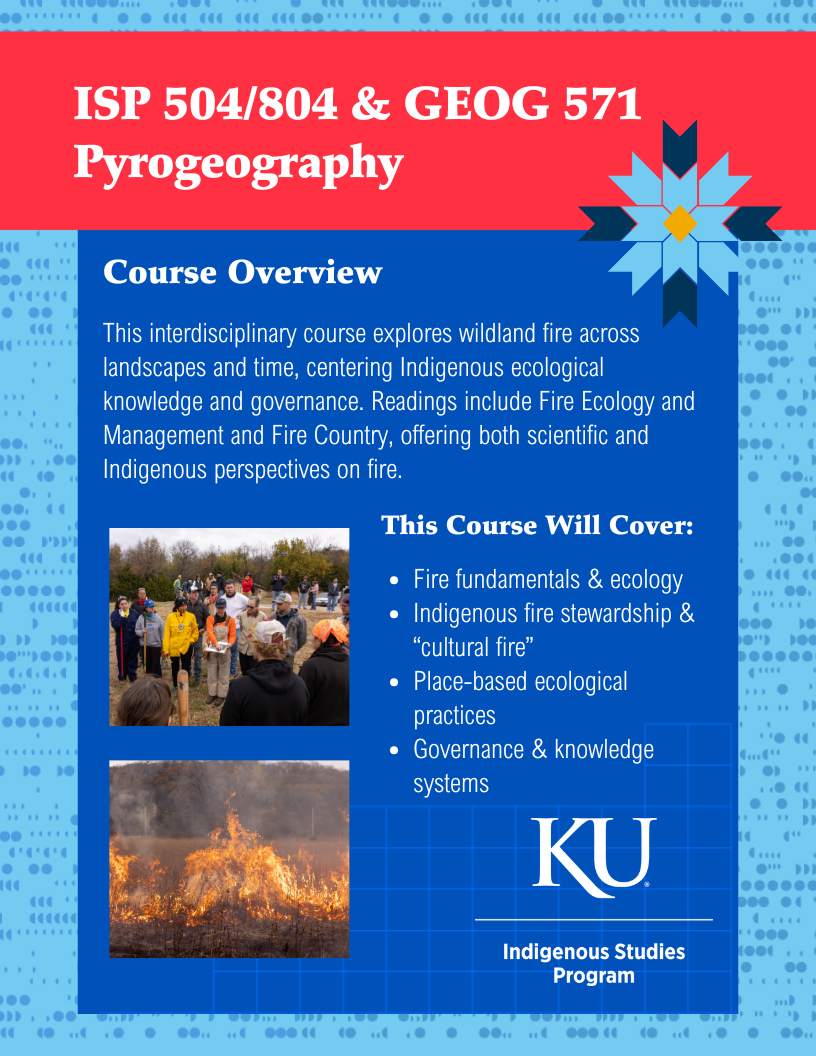 This interdisciplinary course explores wildland fire across landscapes and time, centering Indigenous ecological knowledge and governance. Readings include Fire Ecology and Management and Fire Country, offering both scientific and Indigenous perspectives on fire.